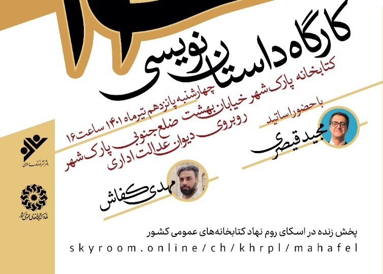 در این کارگاه که به همت دفتر نشر فرهنگ اسلامی و نهاد کتابخانه های عمومی کشور، برگزار میشود، مجید قیصری و مهدی کفاش از نویسندگان مطرح کشور، به آموزش اصول و مبانی نگارش داستان کوتاه و روایت داستانی میپردازند.