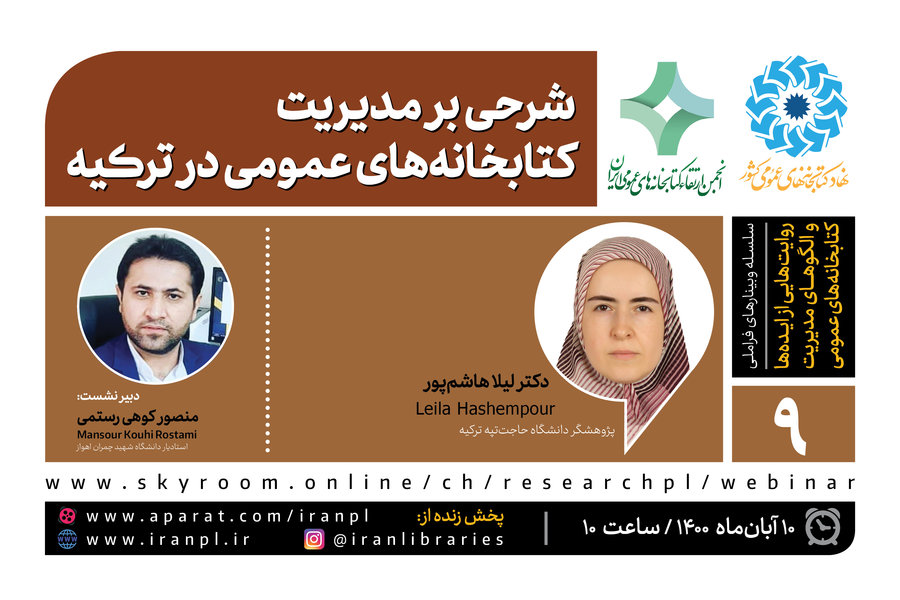 نهمین جلسه از سلسله وبینارهای «روایتهایی از ایدهها و الگوهای مدیریت کتابخانههای عمومی» با حضور پژوهشگر دانشگاه حاجتتپه ترکیه به بررسی کتابخانههای عمومی ترکیه می پردازد.